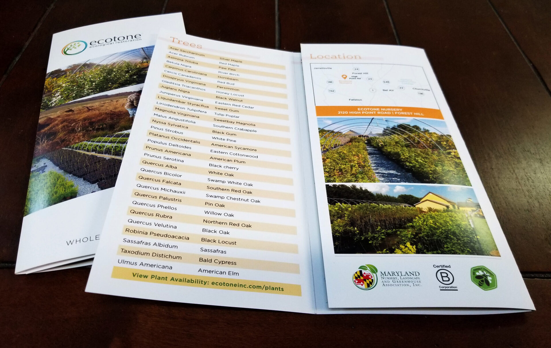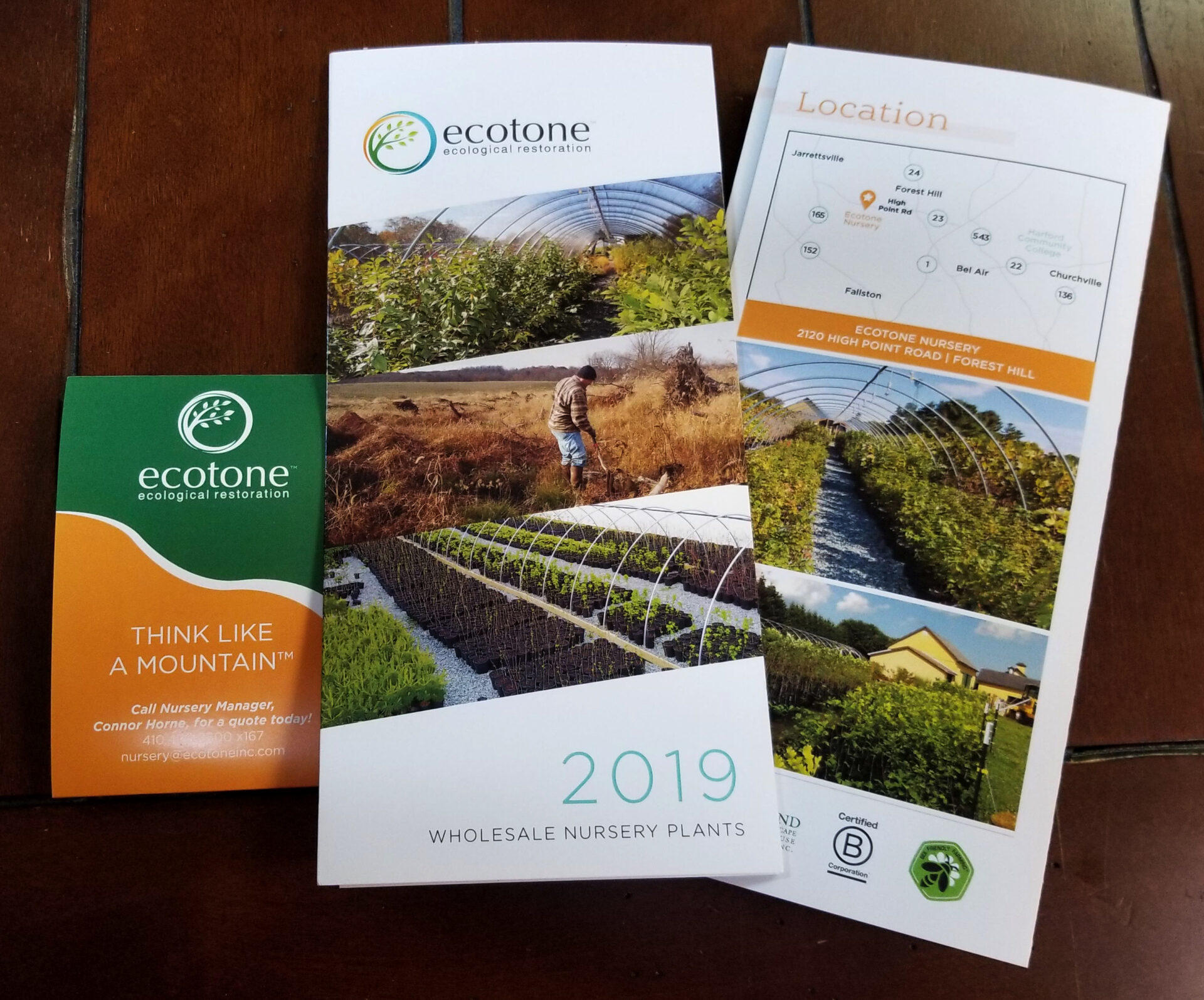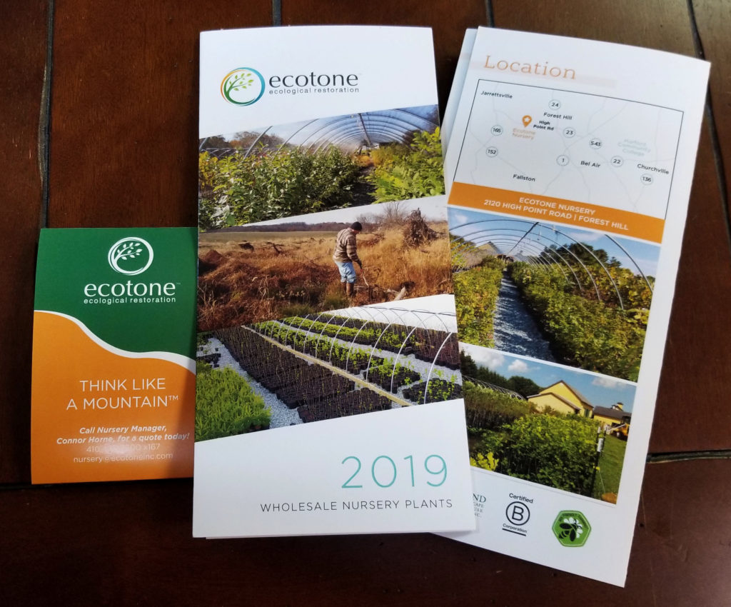 Ecotone, an ecological restoration firm, came to Main St. Design to work on their mailing campaign. Ecotone has recently created a nursery and wished to create a pamphlet to advertise their many plants. We designed for them a brochure that highlights their new facility and the plants they sell.