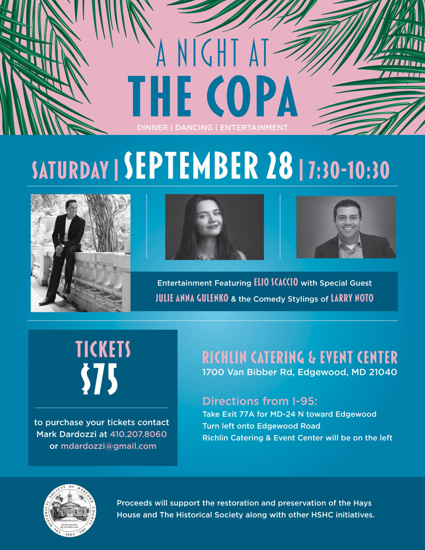 Main St. Design branded The Historical Society of Harford County’s event, Night at the Copa. This was an evening of dinner, dancing and entertainment and needed a design that would reflect the fun, care-free night. We focused on a fun an unexpected color palate, mixed with modern feel of typography and graphics. We created a series of flyers, forms and web advertisements.