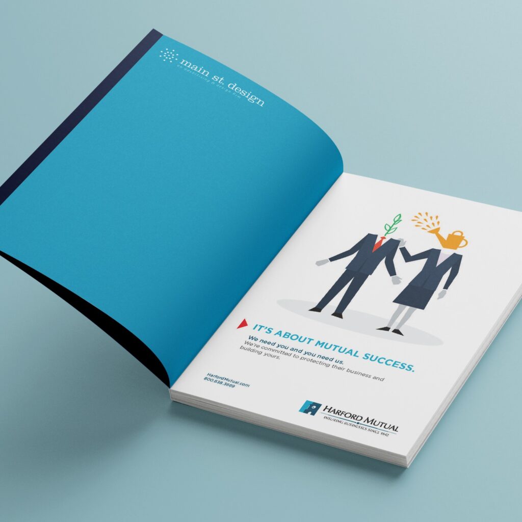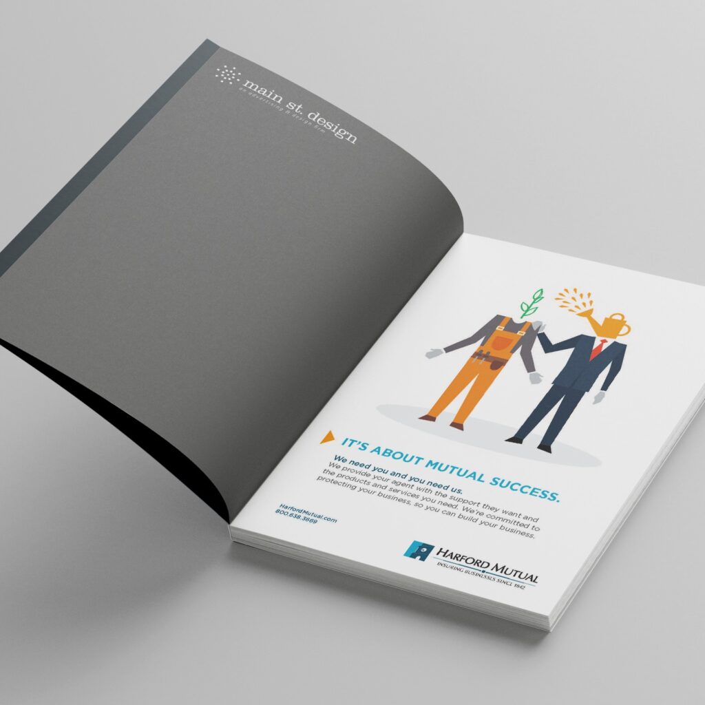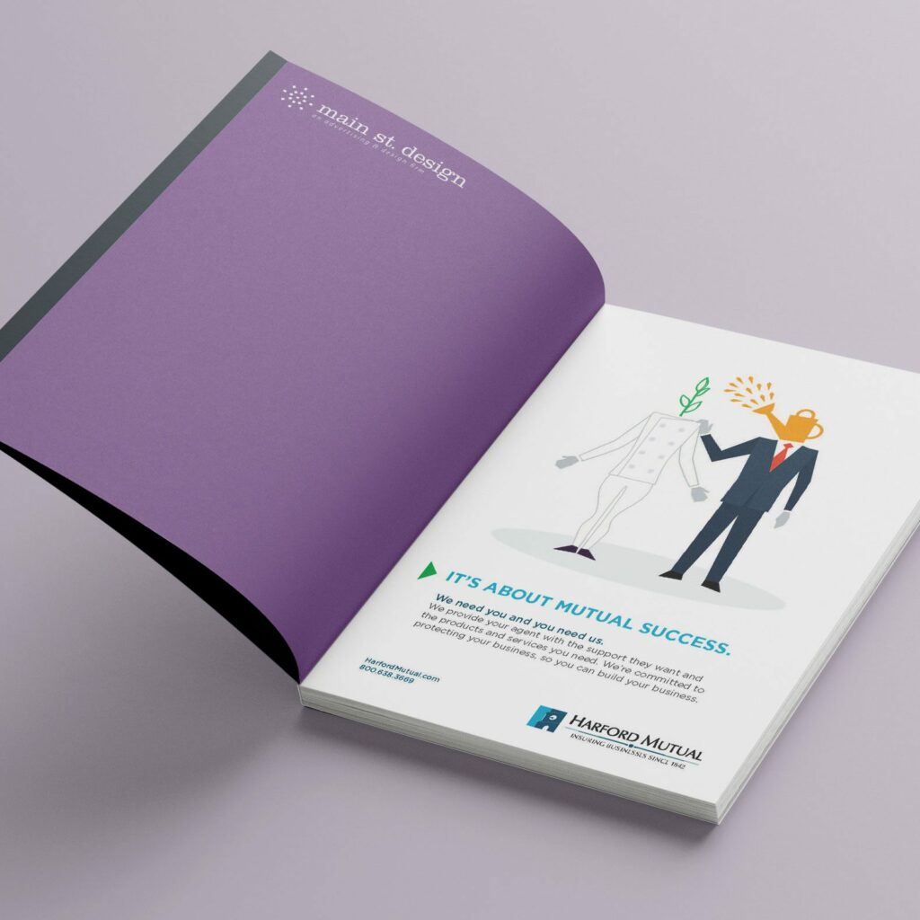 Harford Mutual, an Insurance Company founded in Harford County, approached Main St. Design with an ad campaign project seeking to demonstrate “How does Harford Mutual help other companies grow?”. We designed an illustration that depicted multiple industries, which Harford Mutual targets, being nourished by a business professional (like Harford Mutual).
