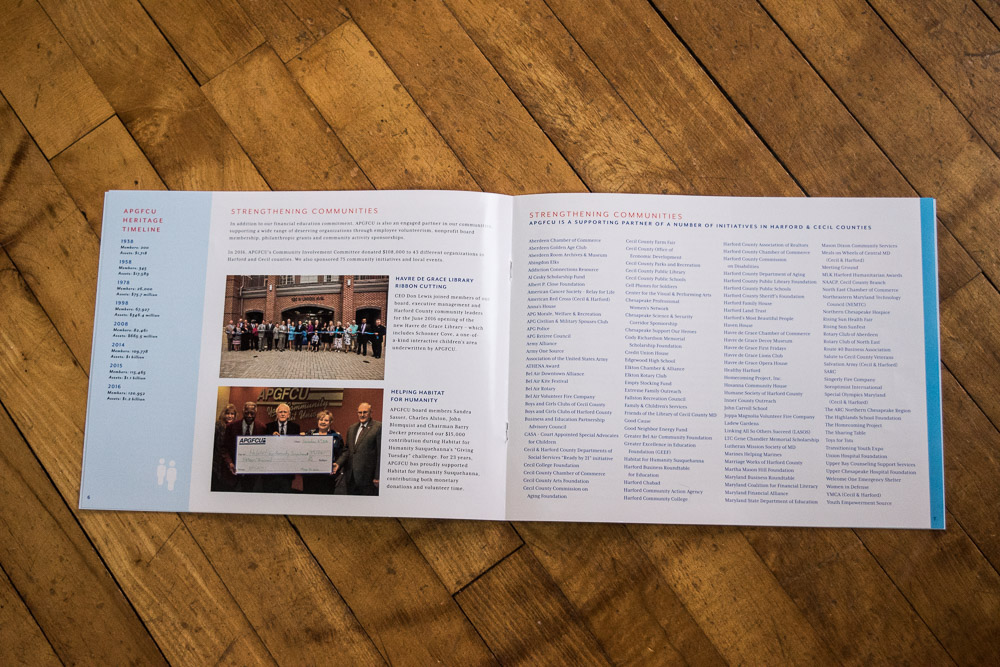 Aberdeen Proving Ground Federal Credit Union has become the largest financial cooperative in the area and is able to serve our members and communities as a trusted financial partner. Staying inline with their brand, APGFCU wanted to work with a design agency in the community. Main St. Design was happy to deliver.