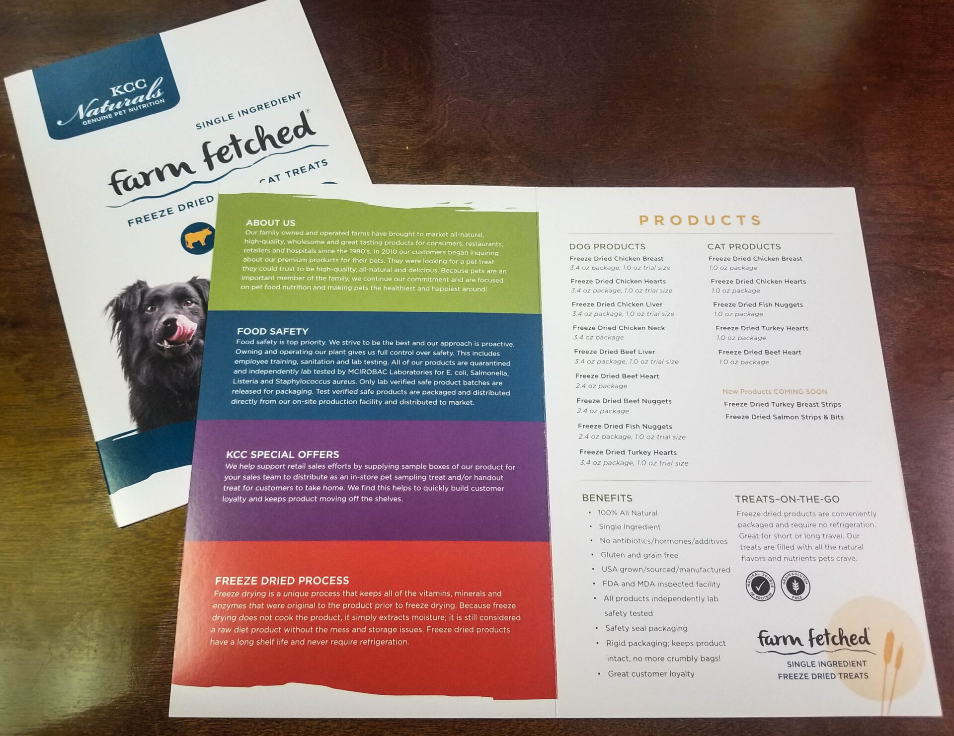 Following a packaging project for KCC Natural Farms’ dog treats, FarmFetched, Main St. Design designed a new brochure to showcase their different products.