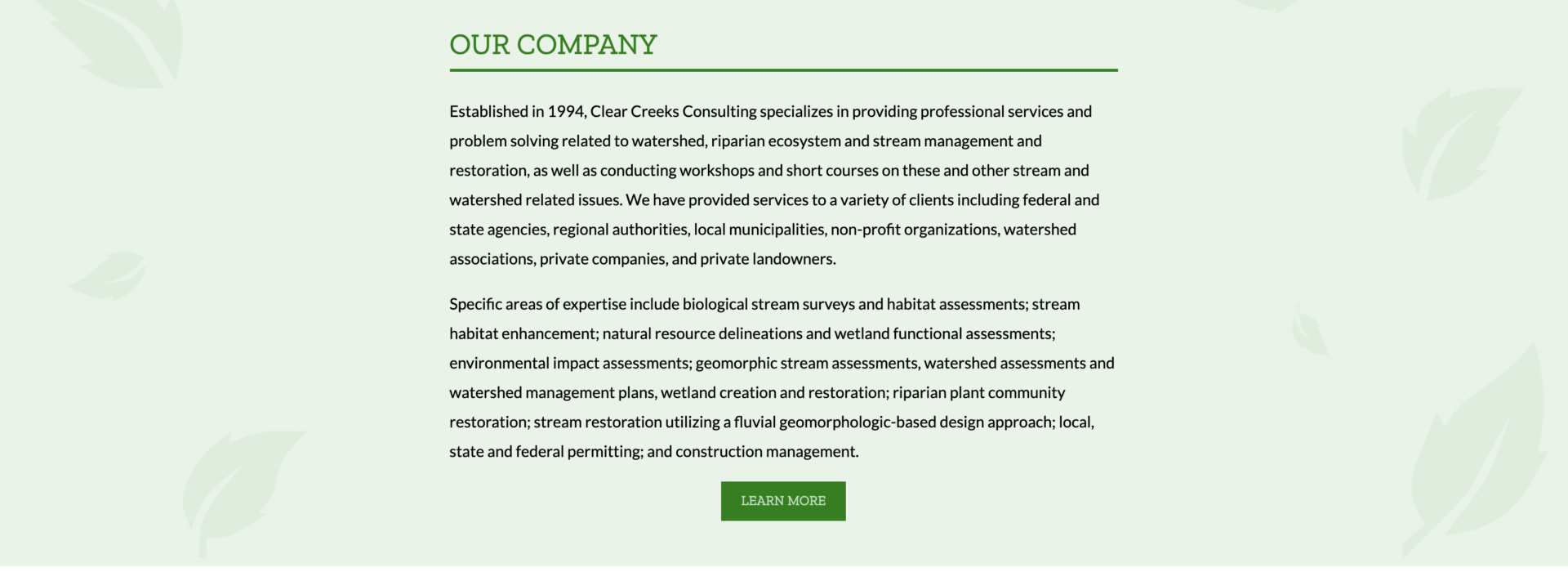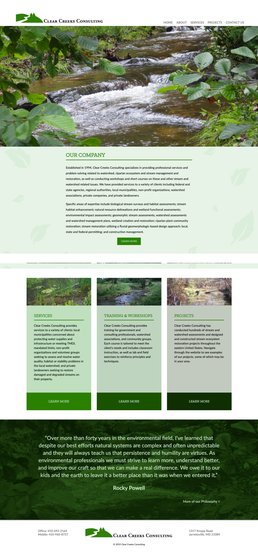 Clear Creeks Consulting came to Main St. Design to develop a website that showcased their projects and passion for the environment.